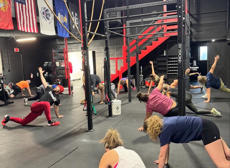 Group classes are an hour long, coach lead structured class. The format includes mobility, strength, and conditioning. Every workout is programmed in-house and written by Coach Chad. This allows for a more personalized approach to the programming, rather than a "one sized fits all".